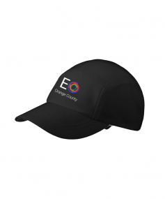 Sweat wicking, lightweight, breathable with 100% poly closed-hole mesh. Terry sweatband, 5 panel, unstructured, with low profile that stays secure as you run. Black under bill to prevent glare. Reflective O heat transfer on side panel and webbing with buckle closure.